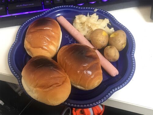 起きて絵描いて仮面ライダービルド見る。 先週の今頃は凍結されてたンだよなァ〜〜と感慨深くなる。 朝飯。バターロールとKウインナーとジャガイモとザワークラウト。雑! 前から思ってたがこのザワークラウトの瓶詰めはあんまうまくない。 汁絞った方がまだ…
